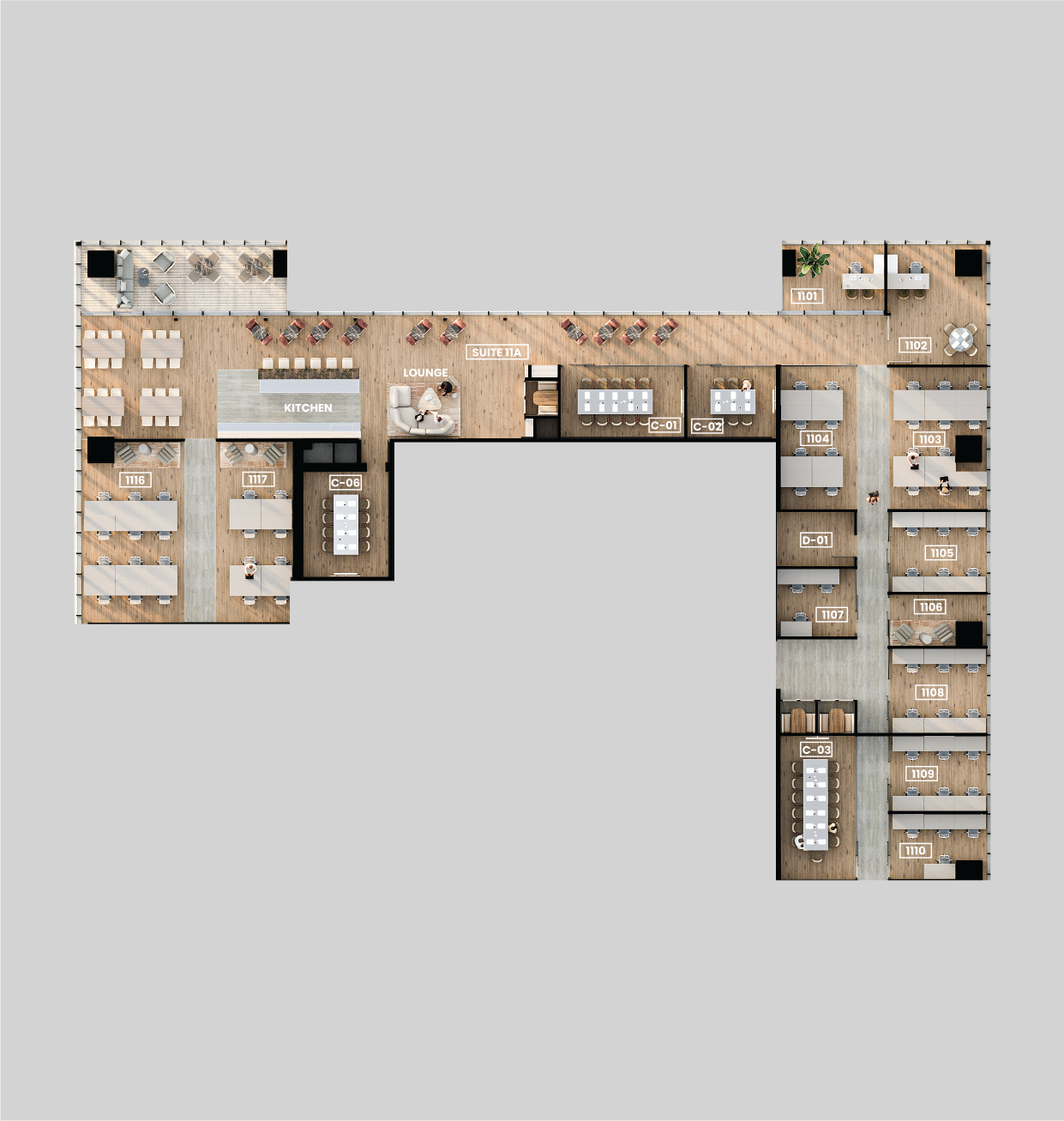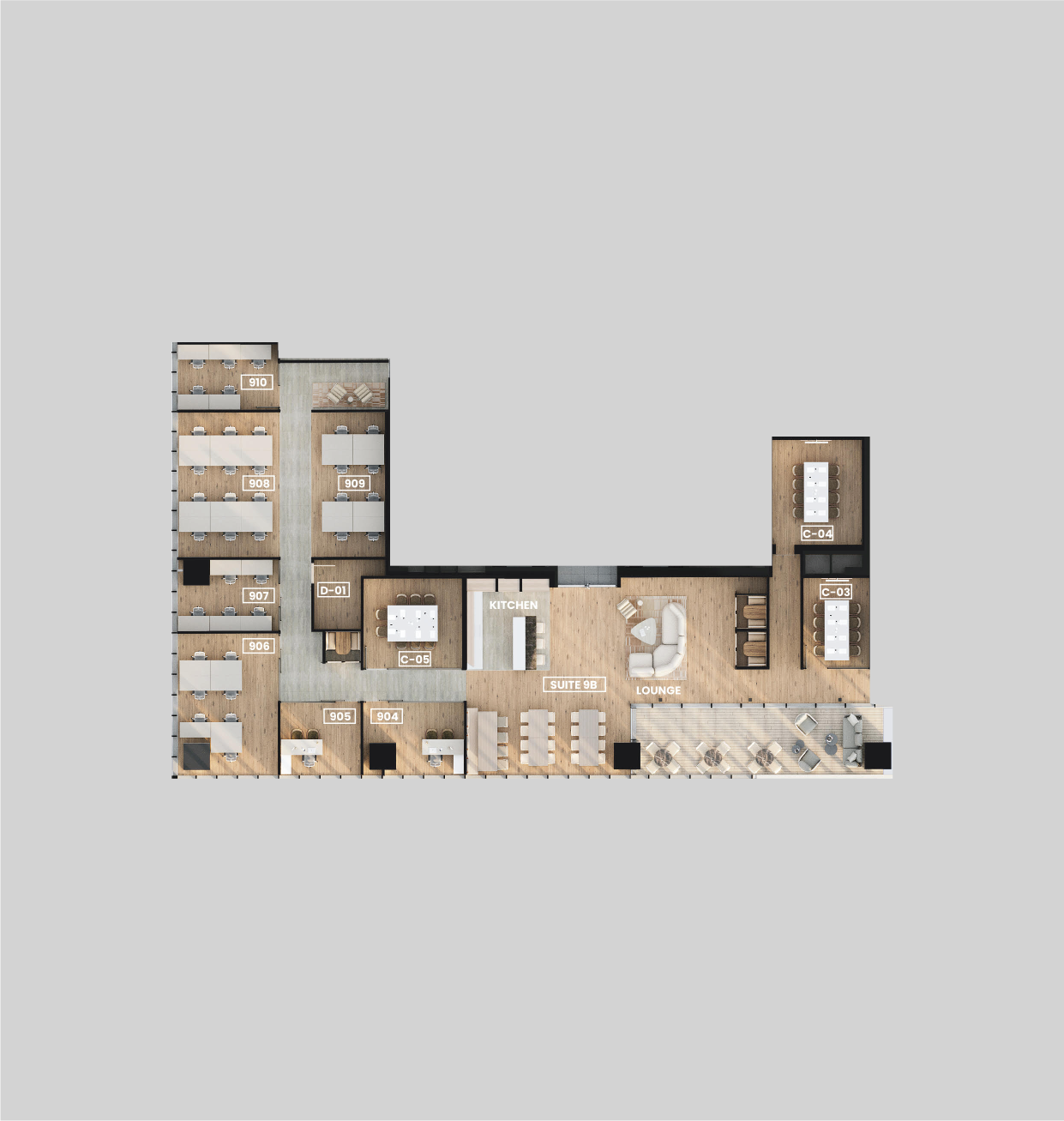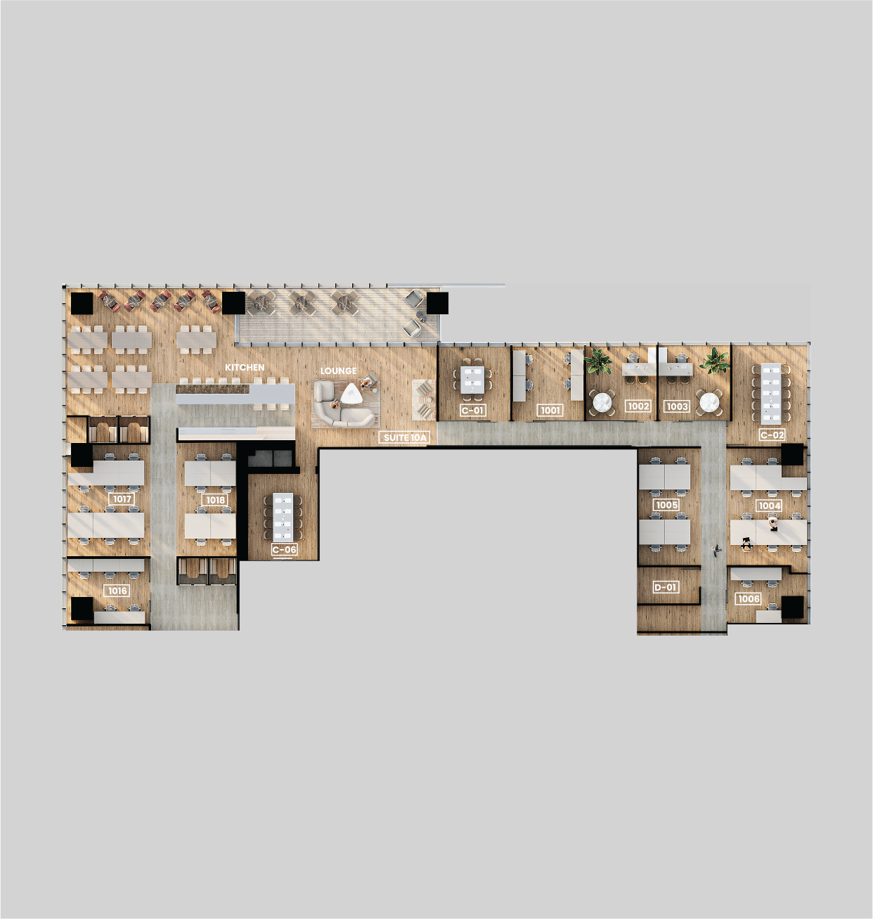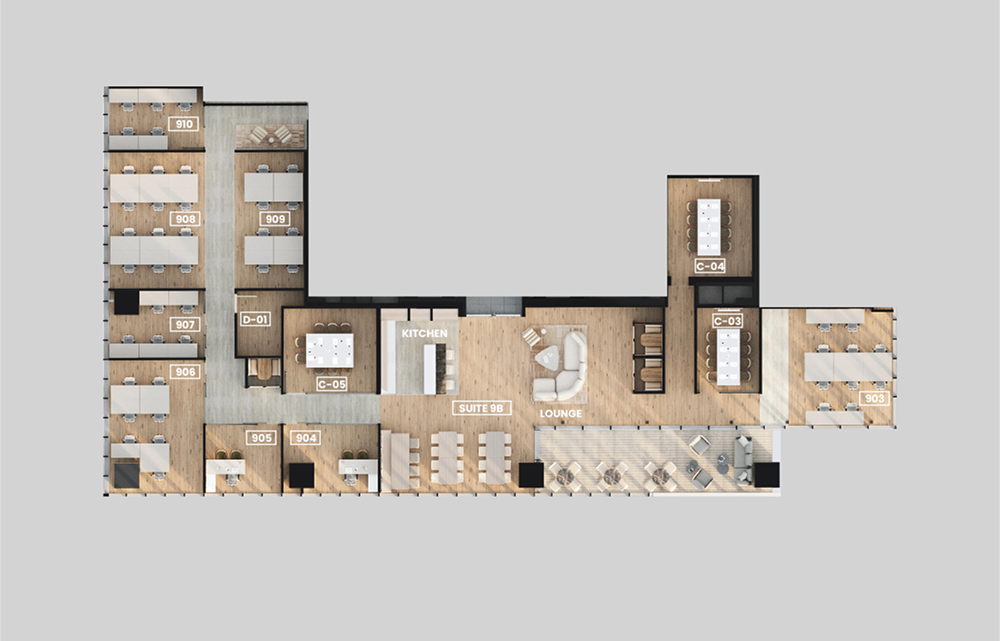 המתחמים בסטנדרט של 5 כוכבים עם עיצוב מוקפד וחווית עבודה אקסקלוסיבית.