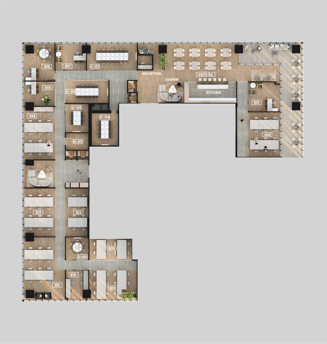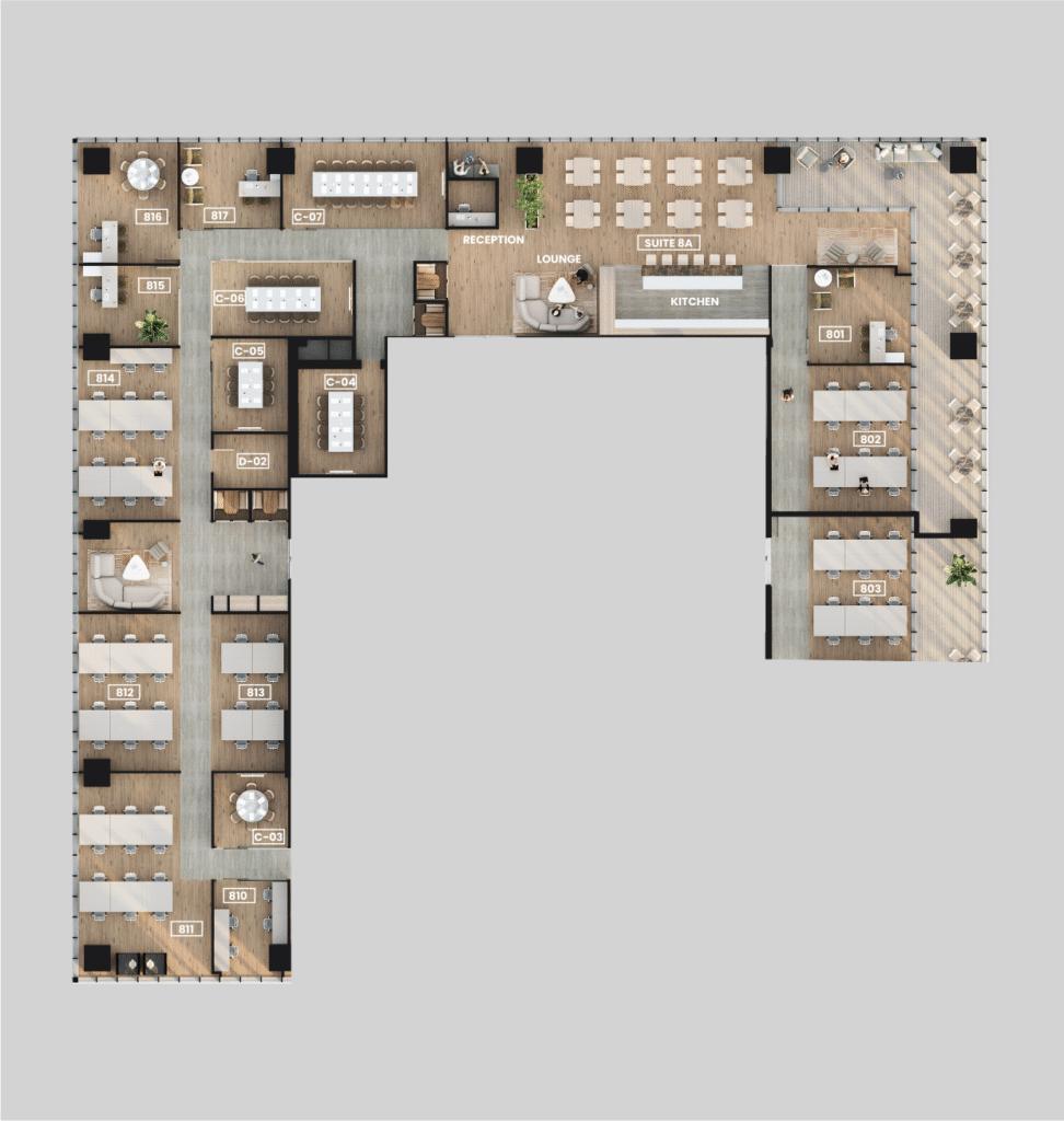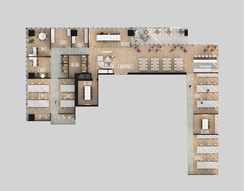 במתחם תוכלו לבחור בין משרדים פרטיים, עמדות עבודה קבועות או מתחלפות, סוויטות פרטיות ושטחים להשכרה. כל אלה מתפרסים על פני שבע קומות משרדים – עם ההזדמנות להיות הראשונים שבוחרים את המשרד הבא שלכם.