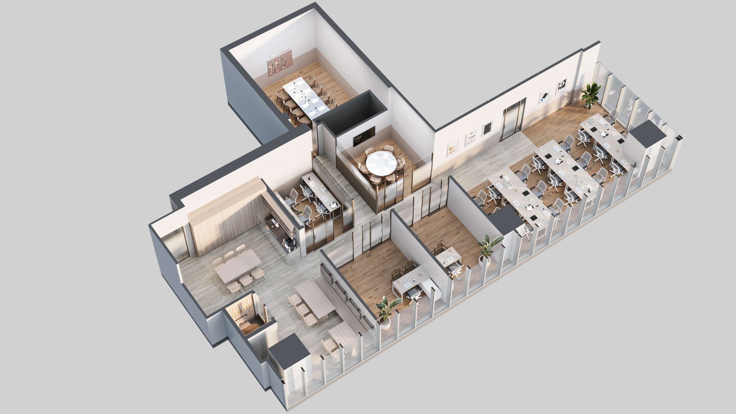 המתחמים בסטנדרט של 5 כוכבים עם עיצוב מוקפד וחווית עבודה אקסקלוסיבית.